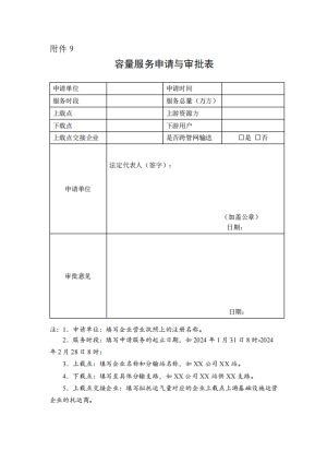 (一)《容量服务申请与审批表》(具体格式见附件9);